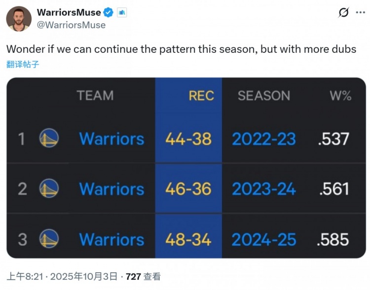 Warriors Self Media Warriorsmuse đã tiết lộ hồ sơ của Chiến binh trong ba mùa qua, như sau: